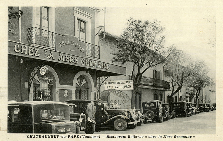En 1922, Germaine Vion, cuisinière au Palais de l’Elysée, arrive à Châteauneuf-du-Pape, elle donne un nouveau visage à sa carrière en achetant l’Hôtel Bellevue, créé au tout début du siècle. Sa forte personnalité, son talent aux fourneaux et ses relations parisiennes vont vite faire de cette maison une étape incontournable sur la route de la Provence.