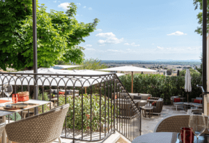 Notre Restaurant étoilé au Guide Michelin offre deux terrasses ombragées, avec une vue exceptionnelle sur la Vallée du Rhône, le Palais des Papes d’Avignon et les Alpilles dessinées au loin.
